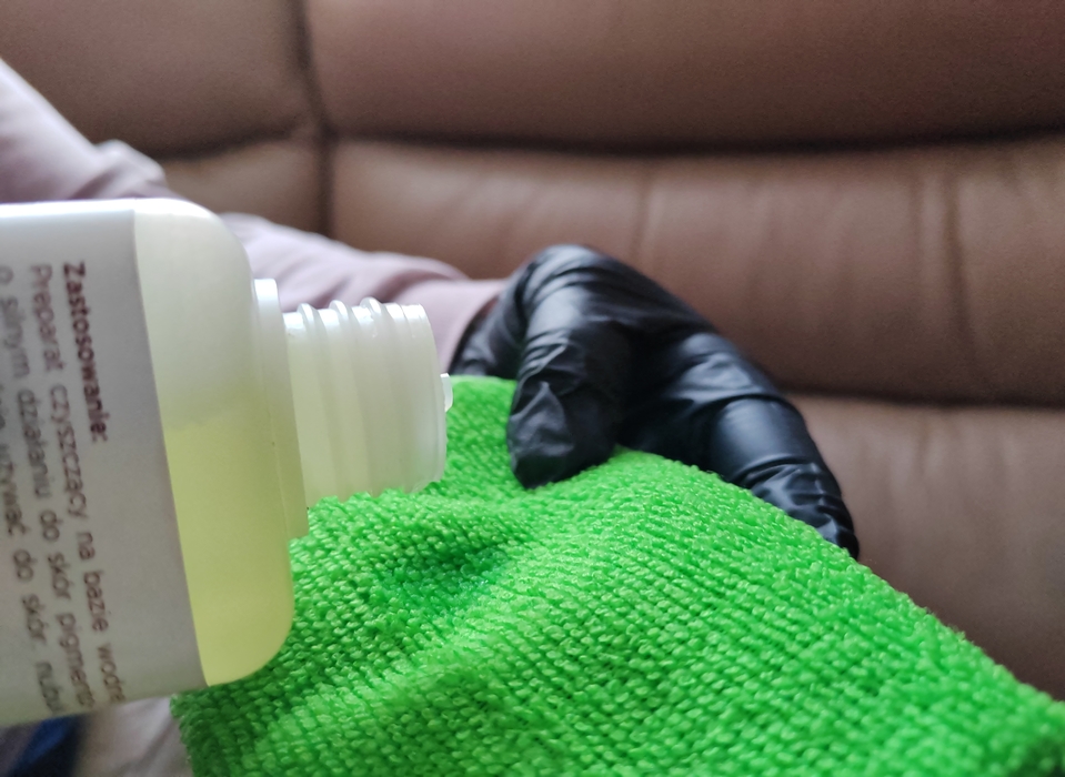 Выберите мягкое нейтральное мыло или специальное чистящее средство, рекомендованное для натуральной кожи. Нанесите небольшое количество мыла на мягкую влажную губку или ткань.