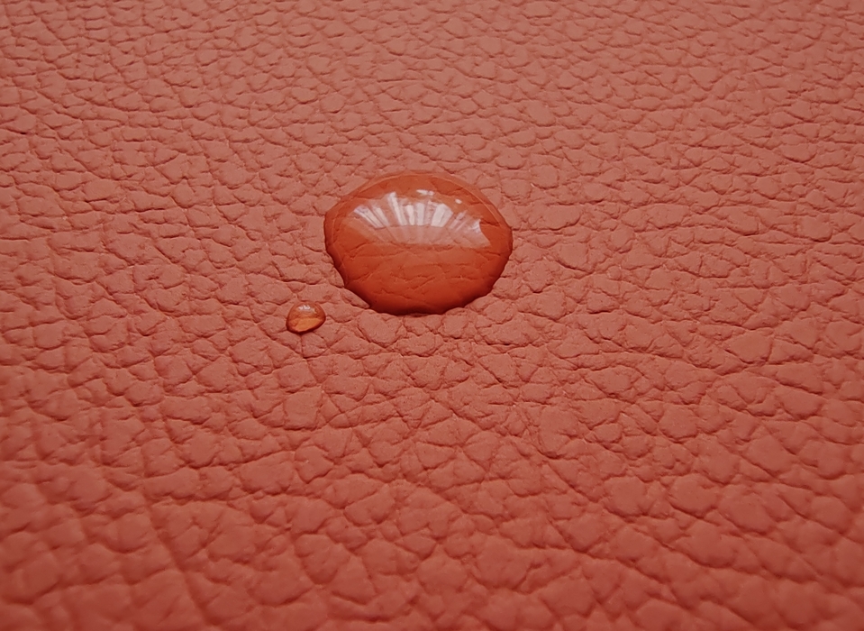 Проверка на водоотталкивающие свойства: Хорошая экокожа обладает свойством отталкивать воду, а не впитывать её. Можно попробовать каплю воды – она должна образовать шарик поверхности.